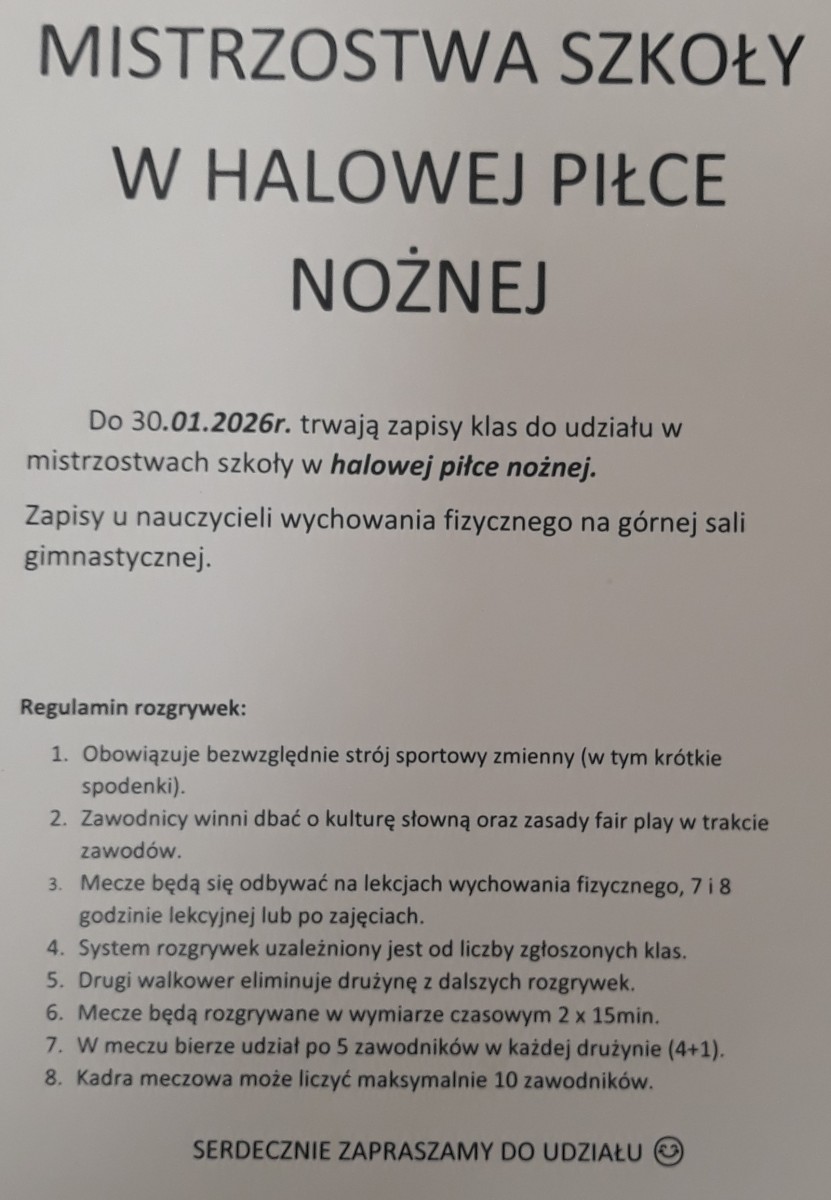 Mistrzostwa Szkoły w Halowej Piłce Nożnej