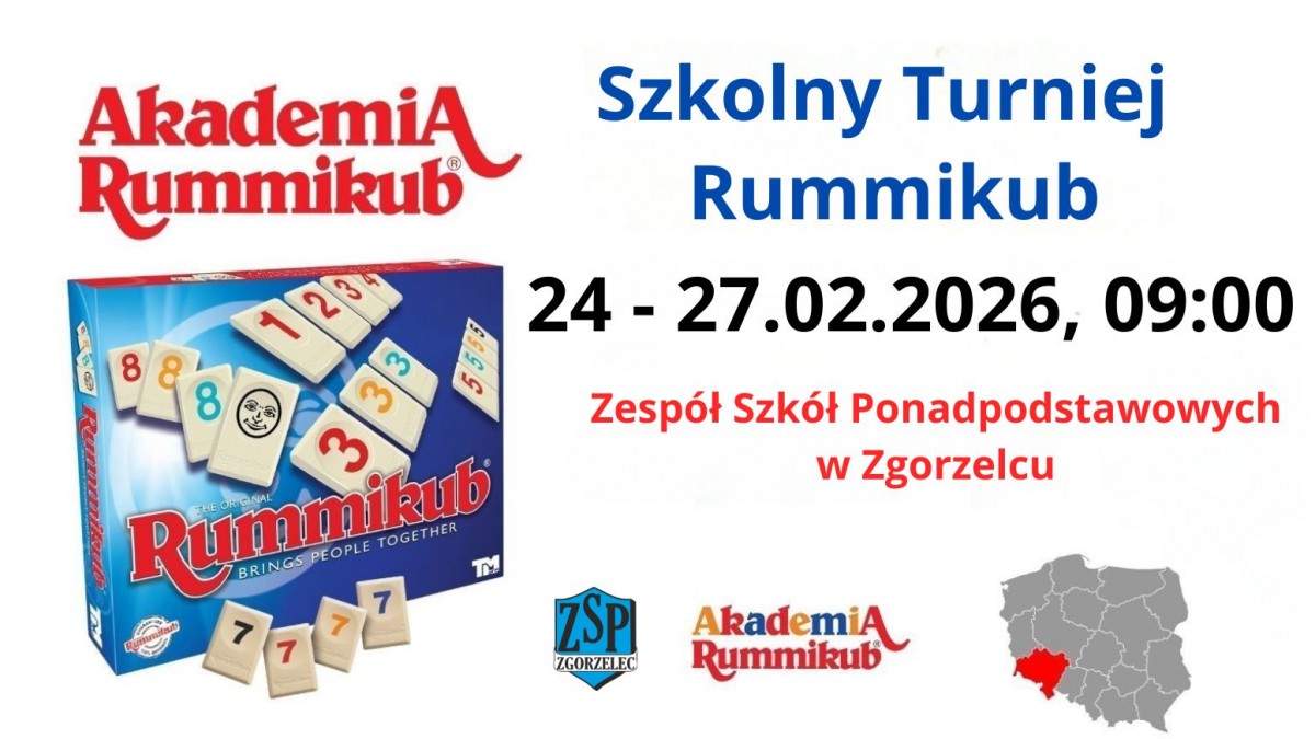 Uczniów, którzy zgłosili się do udziału w Szkolnym Turnieju Rummikub, informujemy, że odbędzie się on w dniach 24-27 lutego. Początek każdej rozgrywki o godzinie 9.00 na świetlicy szkolnej. Szczegółowe materiały dotyczące turnieju, w tym regulamin oraz zasady gry, zostaną przesłane do uczestników za pośrednictwem dziennika elektronicznego.