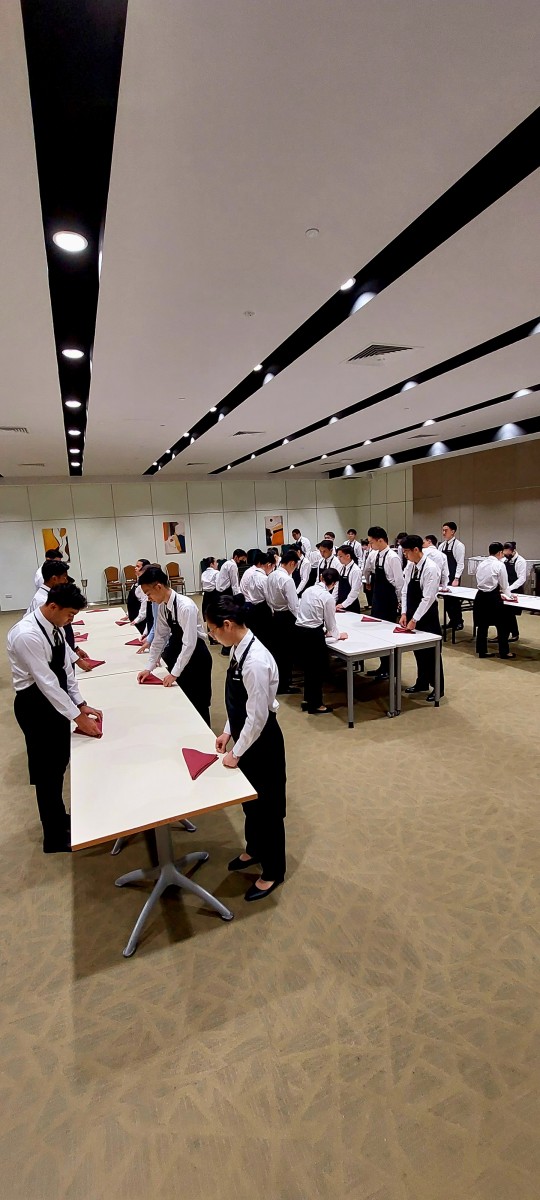 - hotelarze uczą się obsługi gości mając do dyspozycji mnóstwo profesjonalnych sprzętów, naczyń, szkła,