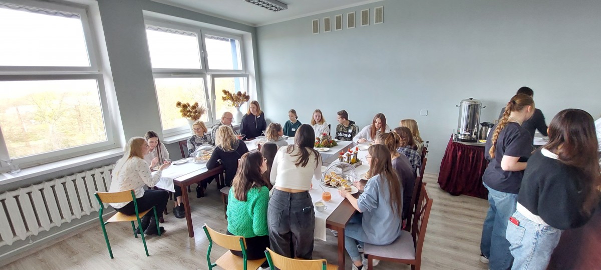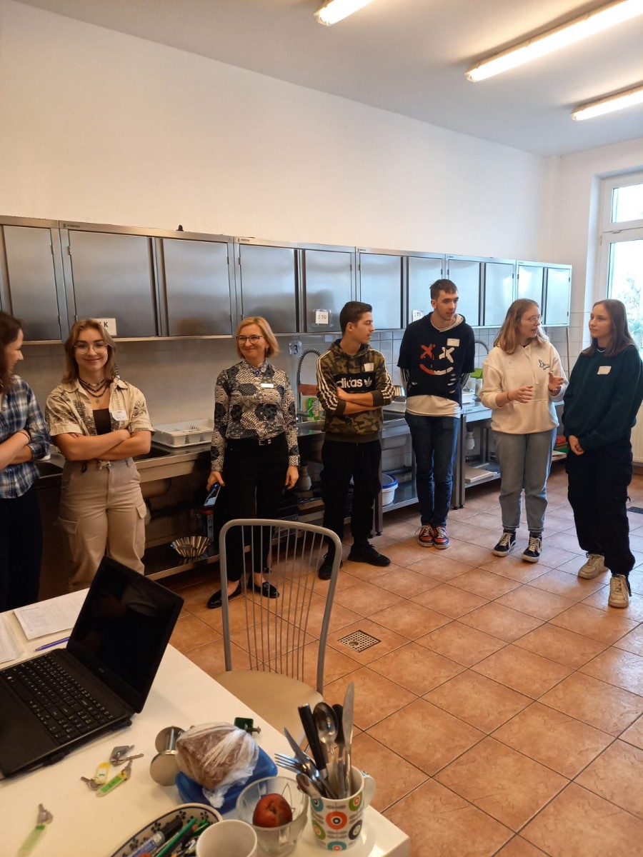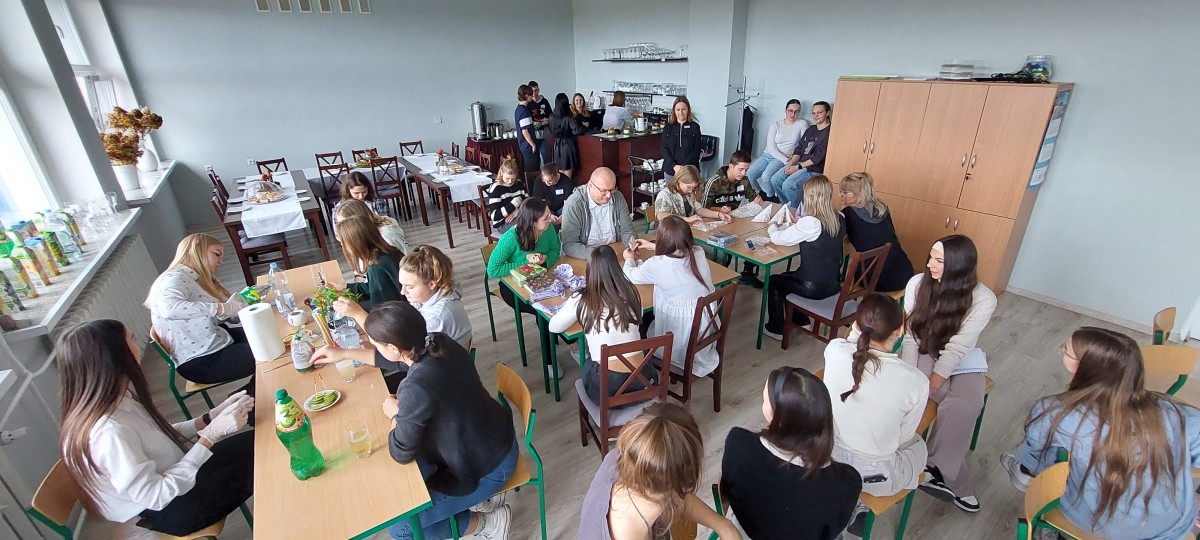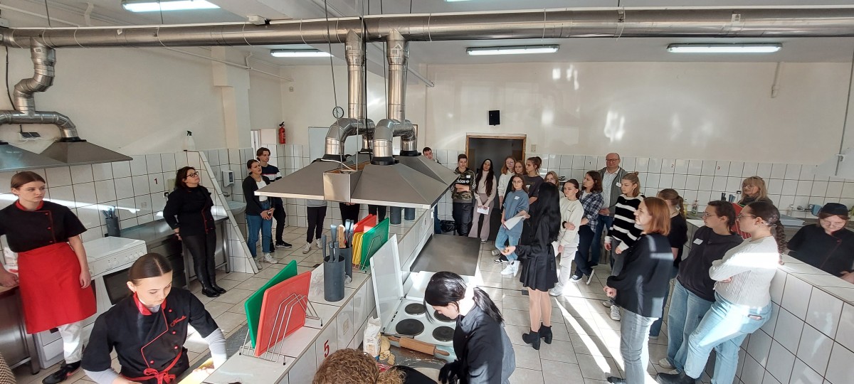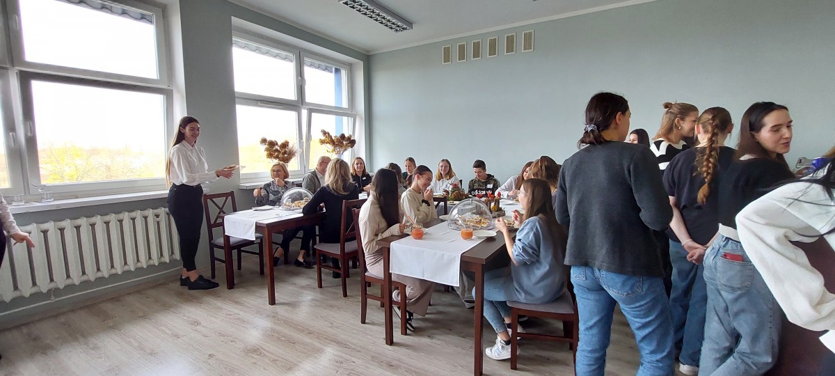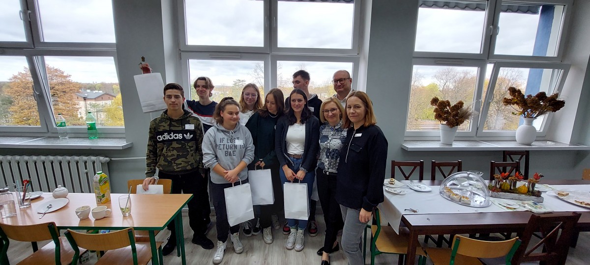 Głównym celem spotkania było wzajemne poznanie w oparciu o tradycje i obyczaje, zaprezentowanie umiejętności przedstawicieli klas gastronomicznych z naszej placówki, jak również doskonalenie umiejętności językowych. Wspólne układanie serwetek i przygotowywanie napojów i kawy stało się spoiwem dwóch narodów- kultur i ludzi. Było okazją do wielu konwersacji, którym towarzyszył uśmiech na twarzach uczestników. Po wspólnych warsztatach zaprezentowaliśmy gościom miejsca, w których zdobywamy wiedzę oraz nowe umiejętności. Stół to miejsce, które jednoczy i pozwala utrzymać międzyludzkie więzi, również przyjacielskie. Mamy nadzieję, że nasze spotkanie będzie początkiem takich relacji, jednocześnie rozbudzi w nas wzajemną życzliwość, chęć współdziałania i doskonalenia naszych umiejętności językowych.