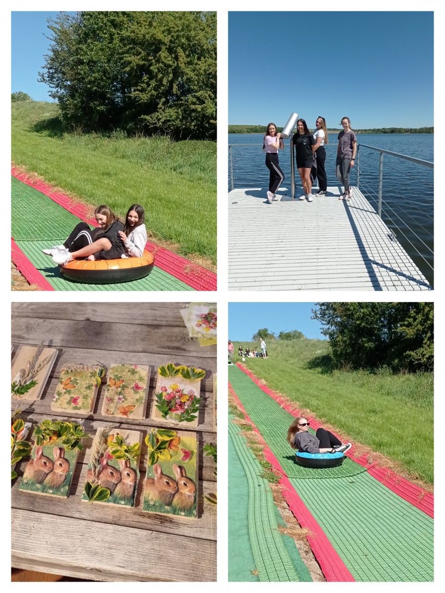 W pięknym otoczeniu przyrody, podziwiając ciekawe i oryginalne gatunki ptaków miło i beztrosko spędziliśmy czas korzystając z lokalnych atrakcji. Były zjazdy na pontonach po torze tubingowym, gra terenowa, mini golf, wycieczka na molo, grill, warsztaty plastyczne ….. To wszystko zorganizowała nam miła p.Aurela. Bardzo dziękujemy :)