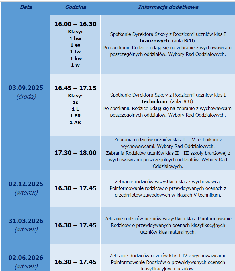 TERMINARZ ZEBRAŃ Z RODZICAMI