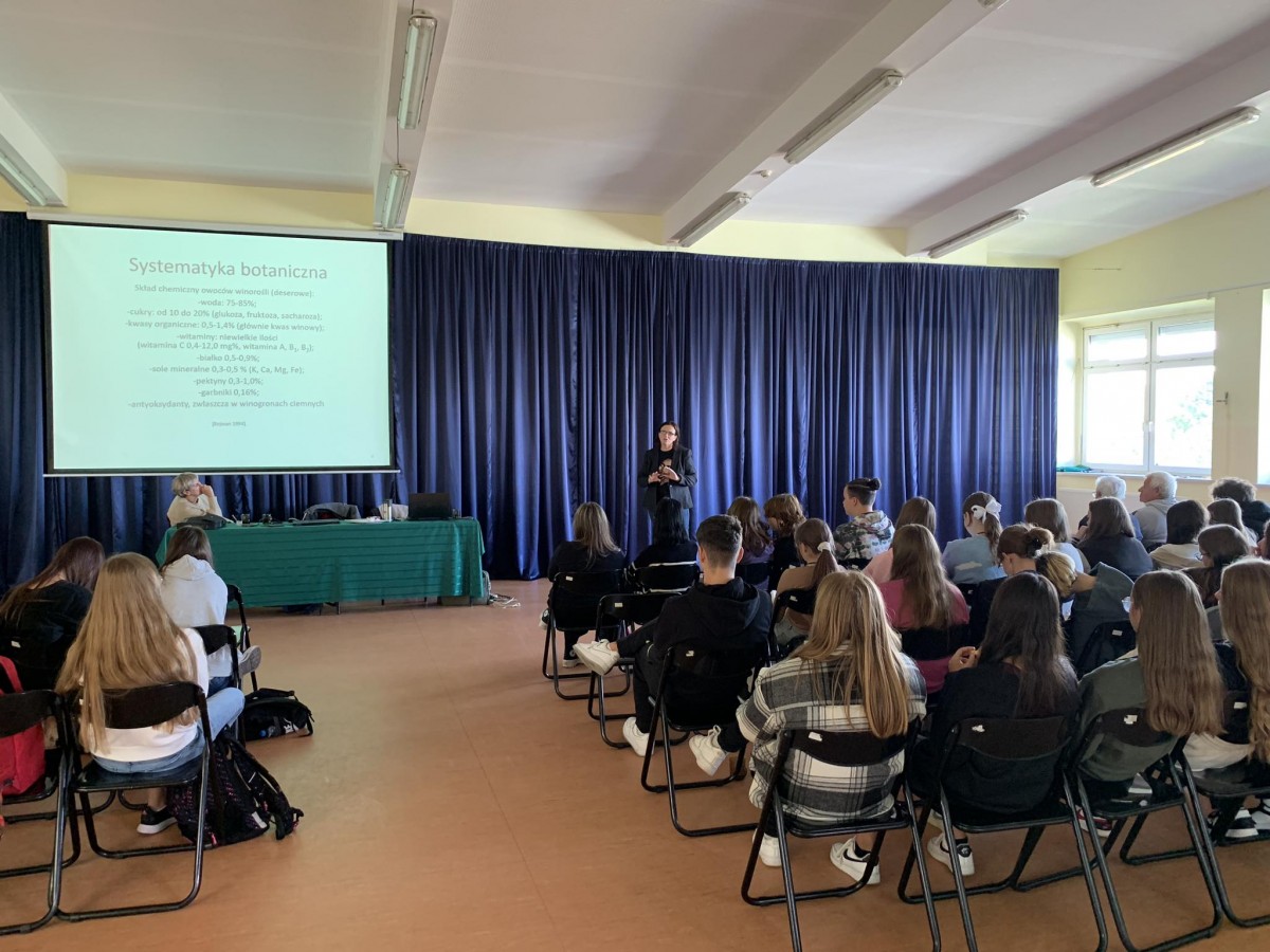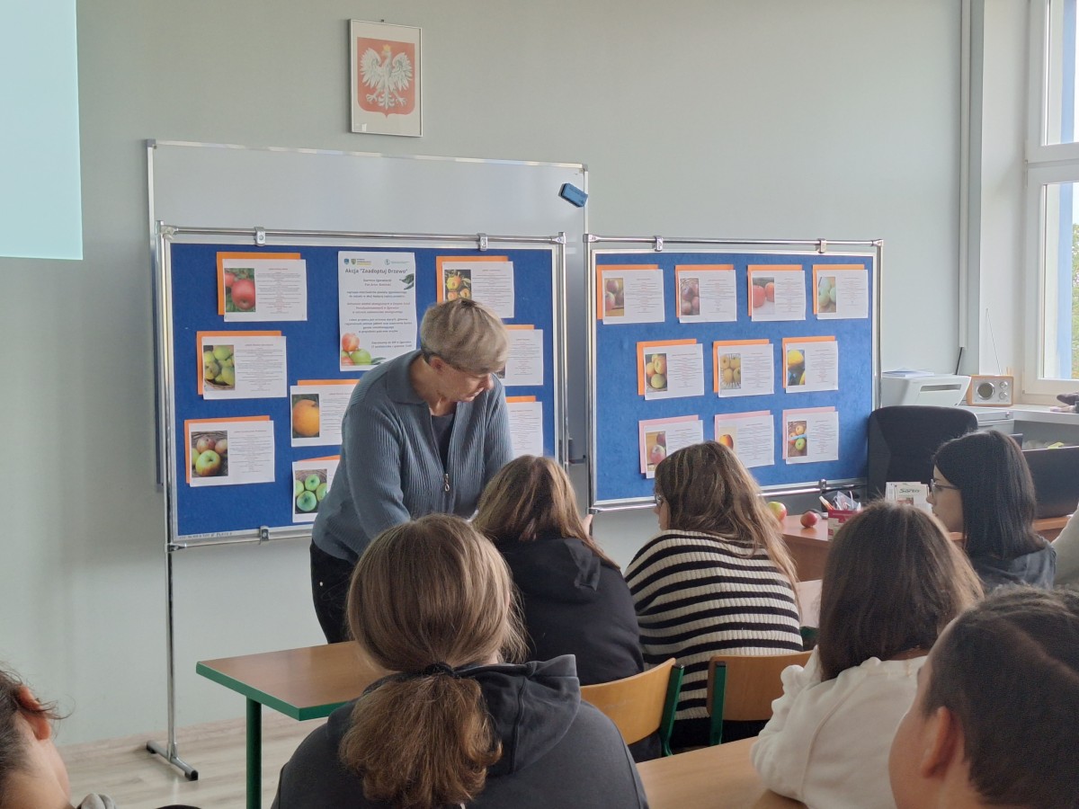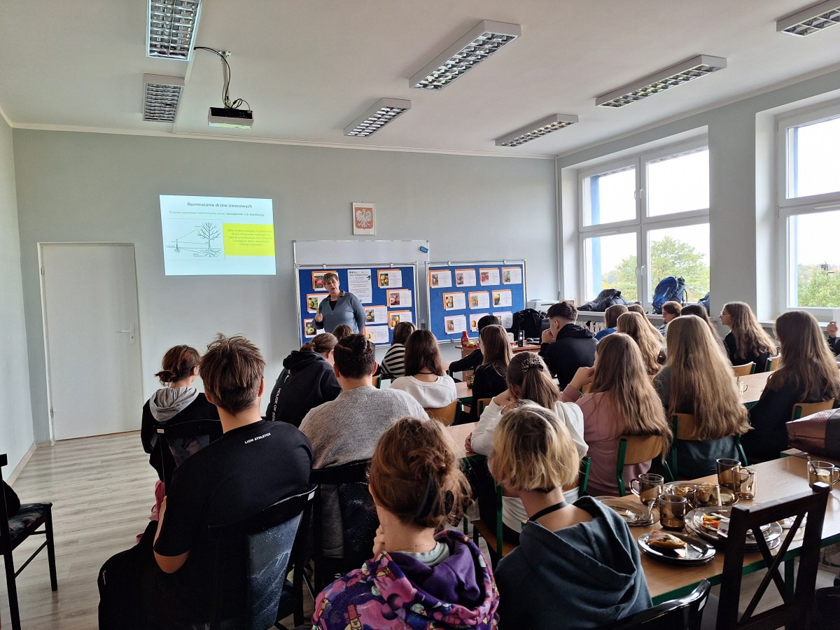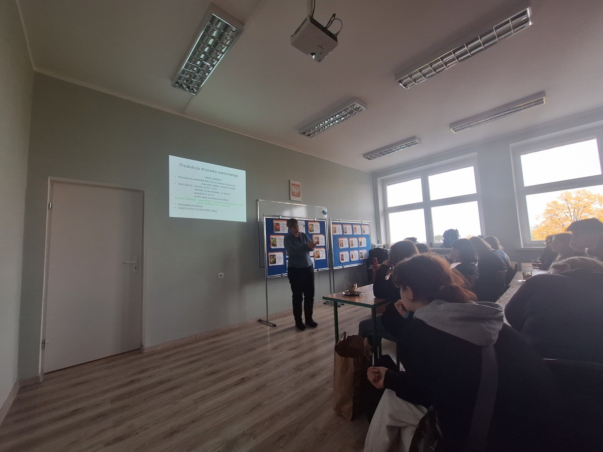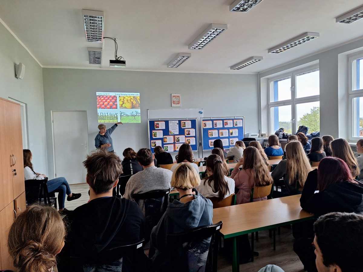 18 i 26 października 2023 r. odbyły się w naszej szkole warsztaty sadownicze będące częścią projektu "Wdrażanie działań ekologicznych w Zespole Szkół Ponadpodstawowych w Zgorzelcu w zakresie sadownictwa ekologicznego" (współfinansowanego z Wojewódzkiego Funduszu Ochrony Środowiska i Gospodarki Wodnej we Wrocławiu). Gościliśmy prelegentów z Uniwersytetu Przyrodniczego we Wrocławiu - panią dr Edytę Gudarowską oraz panią dr Martę Czaplińską oraz licznych słuchaczy z naszego powiatu.